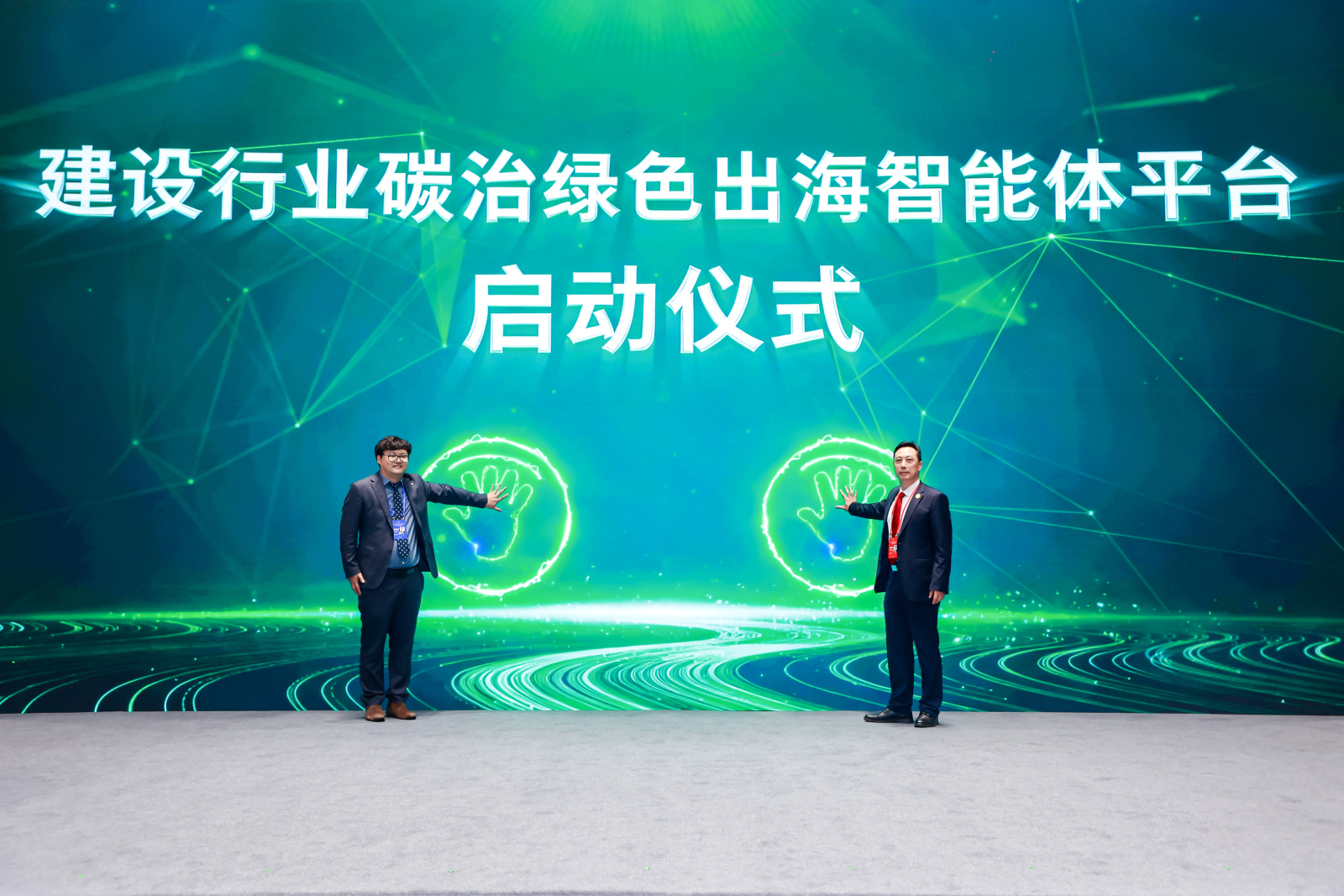 论坛尾声,由中国建设行业贸促会专职副会长采明勇和中国建设行业贸促会中英碳治委员会主任孙冰共同启动“建设行业碳治绿色出海智能体平台”。该平台积极响应全球绿色低碳发展倡议,旨在依托AI、区块链与大数据技术,为相关企业提供一站式绿色出海综合服务,通过整合国际权威标准与数据库,帮助企业精准应对国际绿色贸易规则,降低合规成本,挖掘零碳品牌价值和出海商机。