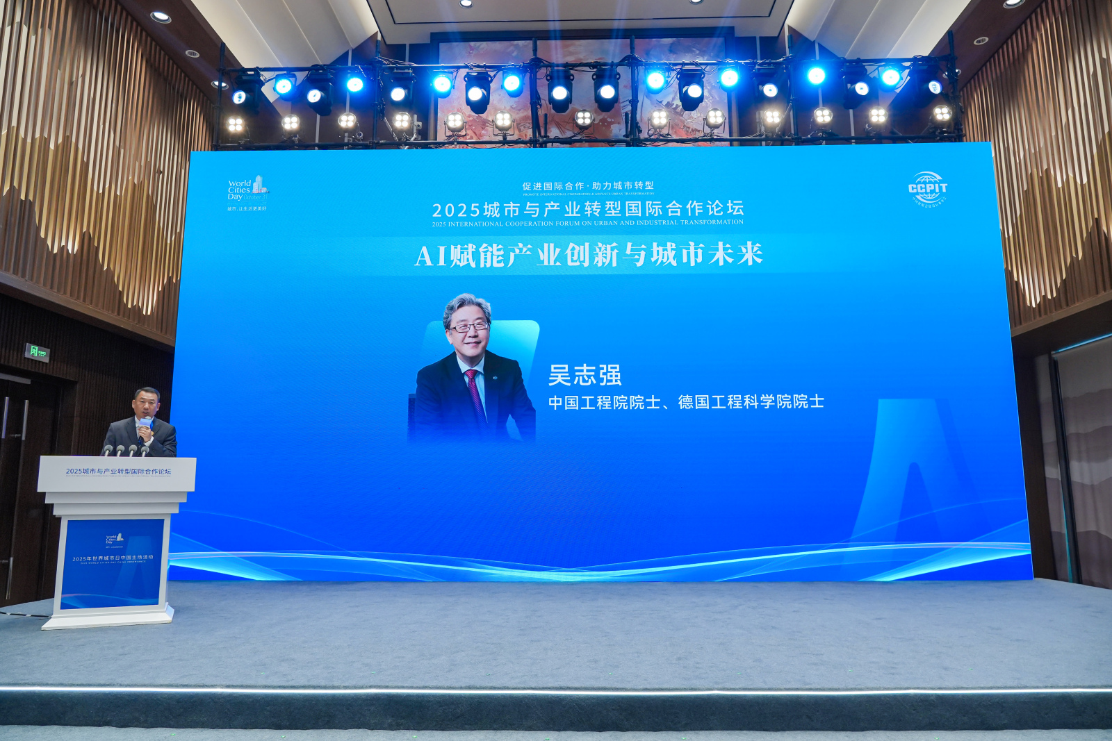 在主旨演讲环节,中国工程院院士、德国工程科学院院士吴志强以《AI赋能产业创新与城市未来》为题作视频演讲。他提出,新时代城市发展需以“创新链、产业链、生态链”三链融合为核心,通过科学规划实现人口、资源、产业的高效配置,为城市转型提供了学术支撑。